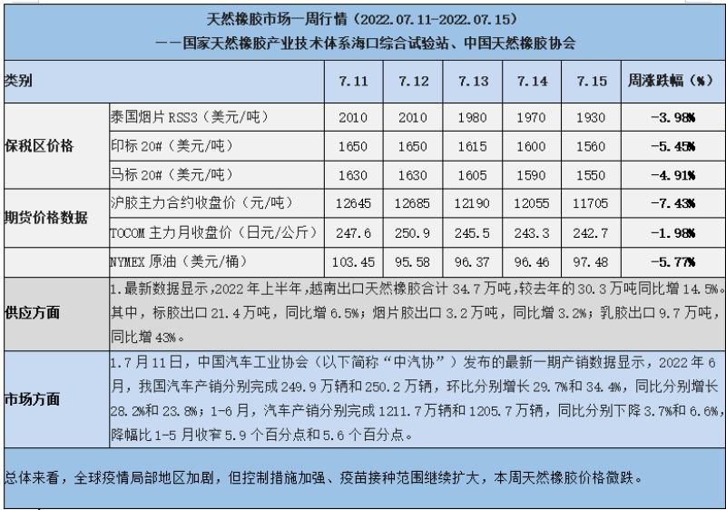 天然橡膠、大豆、玉米市場一周行情(2022.07.11-07.15)