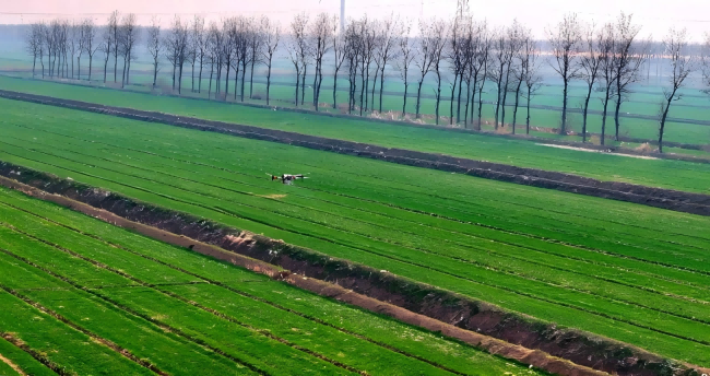 春雨綿綿潤沃野,科技助農(nóng)正當(dāng)時(shí)。濕潤的麥田上空,一架架植保無人機(jī)正按照設(shè)定路線穿梭作業(yè),上演著“速度與激情”?!把b肥、起飛、噴施,一氣呵成。一臺(tái)無人機(jī)每小時(shí)可施肥50畝,全天候連續(xù)作業(yè)可達(dá)千余畝?!绷a(chǎn)區(qū)負(fù)責(zé)人倪信軍說,在春雨墑情適宜的關(guān)鍵期,無人機(jī)作業(yè)不受田間路況影響,不僅效率倍增,還能有效避免傳統(tǒng)拖拉機(jī)進(jìn)田對小麥根系造成的損傷,真正實(shí)現(xiàn)精準(zhǔn)撒施、減肥增效。