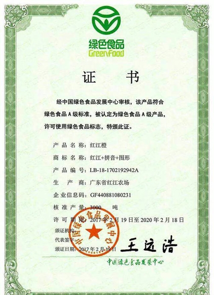 紅江橙,是紅江場(chǎng)科技人員,從一棵變異的單體中,通過(guò)嫁接促成嵌合體的變異而生成。自1973年投產(chǎn)以來(lái),現(xiàn)已擁有二萬(wàn)畝的生產(chǎn)基地。目前紅江農(nóng)場(chǎng)以創(chuàng)名牌為中心,規(guī)劃并建立完善的管理系統(tǒng),已擁有獨(dú)立的科技隊(duì)伍,與獨(dú)立的生產(chǎn)基地、試驗(yàn)基地、培育基地,以及加工與分級(jí)包裝生產(chǎn)線。已獲國(guó)家頒發(fā)的“綠色食品”標(biāo)準(zhǔn)證書,中國(guó)綠色食品A級(jí)認(rèn)證,以及中國(guó)農(nóng)業(yè)博覽會(huì)名牌產(chǎn)品、廣東省名牌產(chǎn)品、廣東省著名商標(biāo)。已列入國(guó)家的星火計(jì)劃,是中國(guó)外交部國(guó)賓館指定的國(guó)賓產(chǎn)品。產(chǎn)品已經(jīng)出口了幾十個(gè)國(guó)家與地區(qū)。