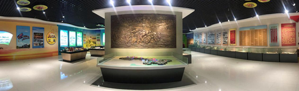 三是企業(yè)文化建設(shè)。主要擺放了新農(nóng)場(chǎng)建設(shè)、職工文化生活、助力脫貧攻堅(jiān)及農(nóng)墾精神等圖片及浮雕。展現(xiàn)了各企業(yè)充分利用政策機(jī)遇,大力推進(jìn)新農(nóng)場(chǎng)建設(shè)和環(huán)境整治活動(dòng),職工生活條件、生活環(huán)境大幅改善,昔日的荒灘現(xiàn)在變成了一座座現(xiàn)代化小城鎮(zhèn),墾區(qū)面貌和職工群眾的生活水平發(fā)生了翻天覆地的變化情況;結(jié)合企業(yè)特色、職工群眾需求,不斷建設(shè)完善小游園、文化廣場(chǎng)、文化活動(dòng)室等基礎(chǔ)設(shè)施,開展形式多樣的文化活動(dòng),豐富職工群眾精神生活情況;自覺履行國企政治和社會(huì)責(zé)任,主動(dòng)與秦安、宕昌、古浪等深度貧困縣對(duì)接,選派扶貧干部駐村幫扶,切實(shí)加大農(nóng)副產(chǎn)品購銷力度,全面助力脫貧攻堅(jiān)行動(dòng),彰顯國企擔(dān)當(dāng)情況;以及農(nóng)墾人在半個(gè)多世紀(jì)的開發(fā)建設(shè)中,用青春、汗水甚至鮮血和生命,在極其艱苦的環(huán)境下培育和錘煉出的“艱苦奮斗、勇于開拓”的農(nóng)墾精神。