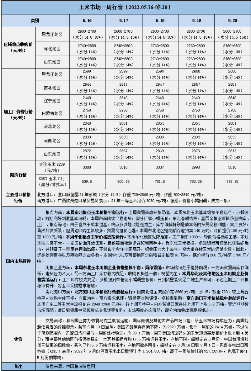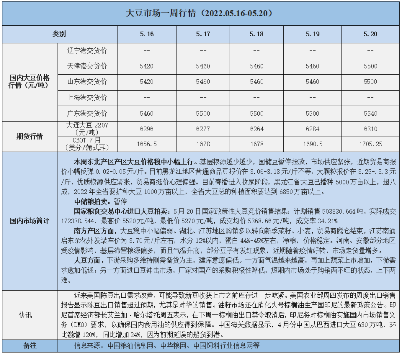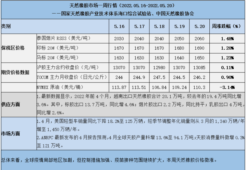 天然橡膠、大豆、玉米市場(chǎng)一周行情(2022.05.16-05.20)