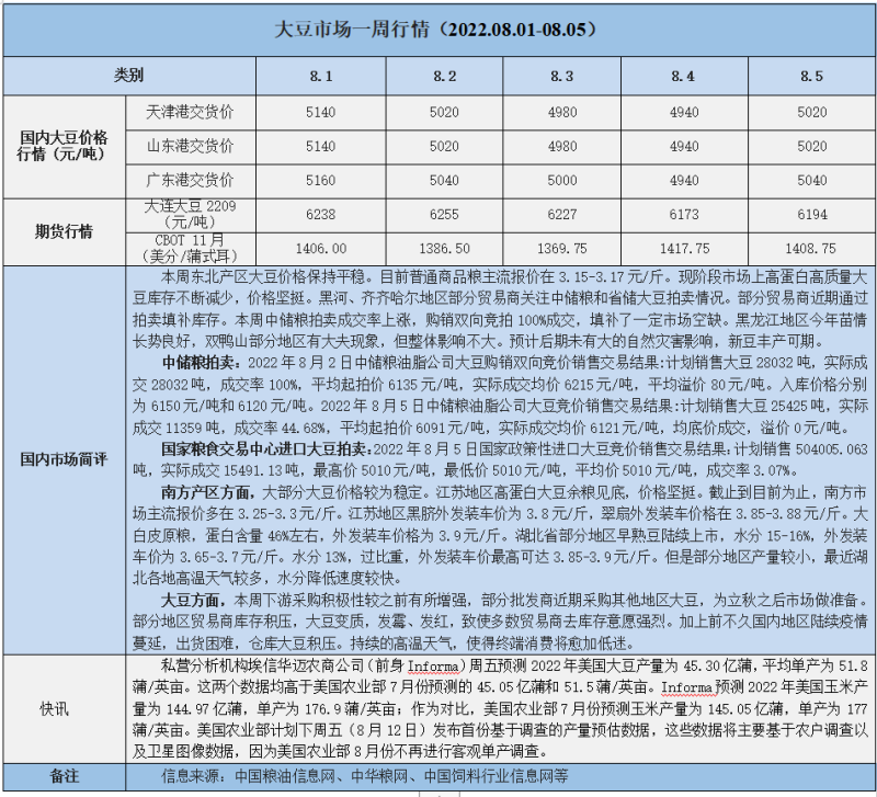 天然橡膠、大豆、玉米市場一周行情(2022.08.01-08.05)