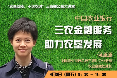 首場(chǎng)直播內(nèi)容:中國農(nóng)業(yè)銀行總行三農(nóng)對(duì)公業(yè)務(wù)部農(nóng)業(yè)金融處處長(zhǎng)何源源介紹農(nóng)行“三農(nóng)”金融服務(wù)的主要情況,展望金融服務(wù)農(nóng)墾改革與發(fā)展的前景。