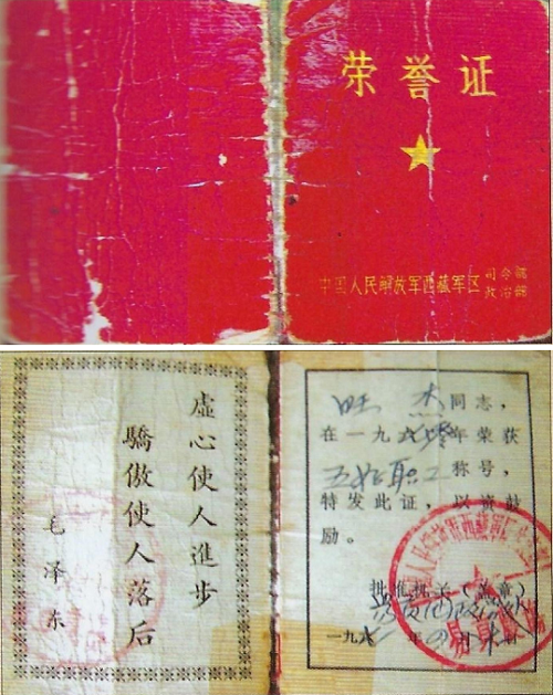 新疆生產(chǎn)建設(shè)兵團(tuán)搬走了,但是正規(guī)的軍墾制度卻留下來了。上圖為1970年易貢農(nóng)場頒發(fā)的“五好職工”證書封面及內(nèi)頁,是西藏軍區(qū)生產(chǎn)建設(shè)師時(shí)代,新易貢團(tuán)發(fā)出的第一批榮譽(yù)證中的一張。