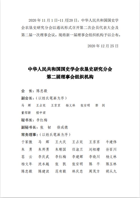 中華人民共和國國史學會農(nóng)墾史研究分會第二屆理事會組織機構