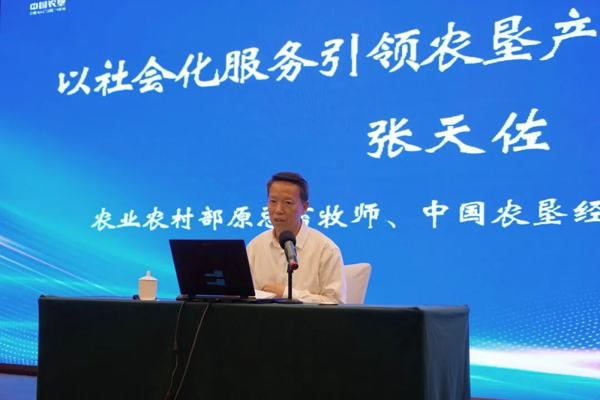 張?zhí)熳糇黝}為《以社會化服務(wù)引領(lǐng)農(nóng)墾產(chǎn)業(yè)高質(zhì)量發(fā)展》的主旨報(bào)告。報(bào)告從農(nóng)業(yè)生產(chǎn)的基本經(jīng)營形式、農(nóng)業(yè)現(xiàn)代化的本質(zhì)、中國式農(nóng)業(yè)現(xiàn)代化路子怎么走、如何加速我國農(nóng)業(yè)現(xiàn)代化進(jìn)程、社會化服務(wù)發(fā)展具備的機(jī)遇等六個(gè)方面進(jìn)行了系統(tǒng)闡述,強(qiáng)調(diào)“要大力發(fā)展專業(yè)化社會化服務(wù),使之成為引領(lǐng)農(nóng)墾產(chǎn)業(yè)高質(zhì)量發(fā)展的牛鼻子”,所提出的推進(jìn)社會化服務(wù)發(fā)展的8個(gè)策略和方法為深化農(nóng)墾社會化服務(wù)、推動產(chǎn)業(yè)升級提供了重要的指導(dǎo)和參考。