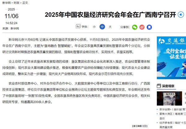 組織舉辦2025年中國(guó)農(nóng)墾經(jīng)濟(jì)研究會(huì)年會(huì),新華社宣傳報(bào)道。