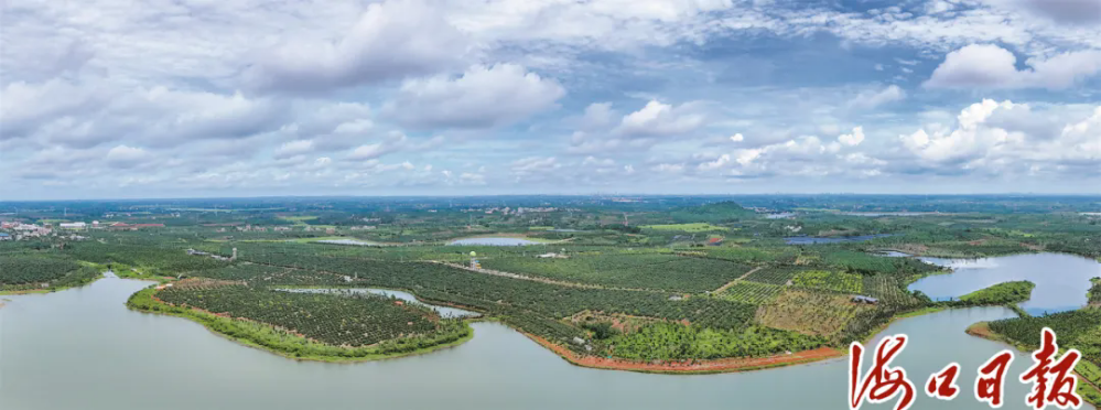 從空中俯瞰瓊山區(qū)三門坡鎮(zhèn)福湖火山荔枝種植示范基地,連片的果樹生機(jī)勃勃。??谑腥诿襟w中心記者 蘇弼坤 攝