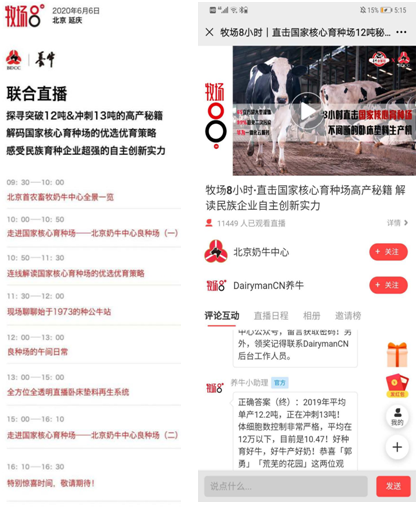6月6日,首農(nóng)食品集團所屬三元種業(yè)首農(nóng)畜牧奶牛中心聯(lián)合中國農(nóng)大《養(yǎng)牛會客廳》,在延慶基地國家核心育種場首次挑戰(zhàn)“牧場8小時”不間斷云直播,同步實現(xiàn)線上線下多專家、多方位、遠程和現(xiàn)場多點切換,實時互動和專業(yè)精講,在云游牧場的同時,介紹前沿養(yǎng)牛技術和先進養(yǎng)牛裝備,帶領觀眾探尋突破12噸、沖刺13噸的高產(chǎn)秘籍,解碼國家核心育種場的優(yōu)選優(yōu)育策略,感受民族育種企業(yè)超強的自主創(chuàng)新實力。據(jù)統(tǒng)計,直播在線累計觀看近12000人次,受到業(yè)內(nèi)廣泛關注和好評。