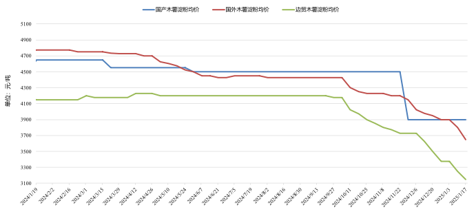 圖3 2024年1月份以來中國各類木薯淀粉均價變化情況