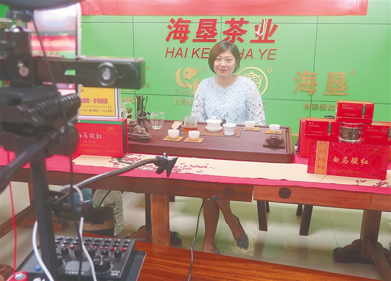 海墾茶業(yè)集團工作人員在直播帶貨。鐘顥 攝