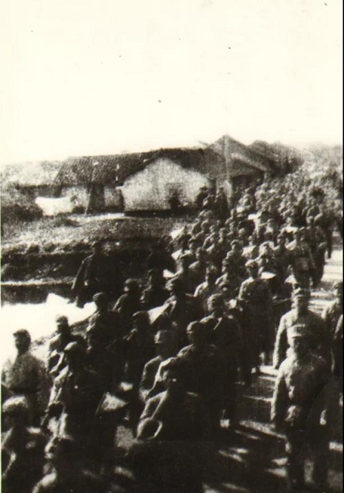 1952年4月22日凌晨,農(nóng)建四師的全體將士,全副武裝,沐浴著帶露的晨曦,揮師北上,向蘇北黃海之濱,蘇北灌溉總渠下游兩岸出發(fā)。出發(fā)時,海門縣縣長茅錫堂率黨政機(jī)關(guān)、學(xué)校、團(tuán)體和從四面八方趕來的數(shù)萬群眾,敲鑼打鼓,在路邊歡送。
